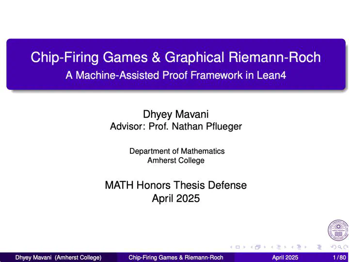 Math Thesis Defense - Lean4 Machine Assisted Proof Framework for Chip Firing Game & Graphical Riemann-Roch